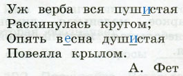 О вербе автор пишет, что она пушистая и раскинулась кругом, а о весне, что она душистая и уже наступила ("повеяла крылом").