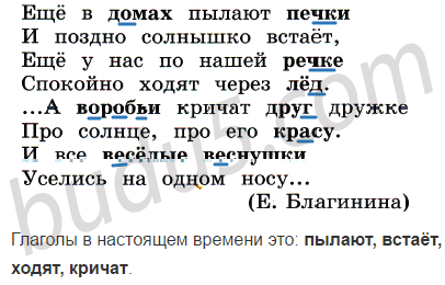 В настоящем времени глаголы отвечают на вопросы что делает? что делают?