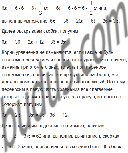 Из корзины взяли 6 яблок, затем треть остатка и еще 6 яблок. После этого в корзине осталась половина первоначального числа яблок. Сколько яблок было в корзине?