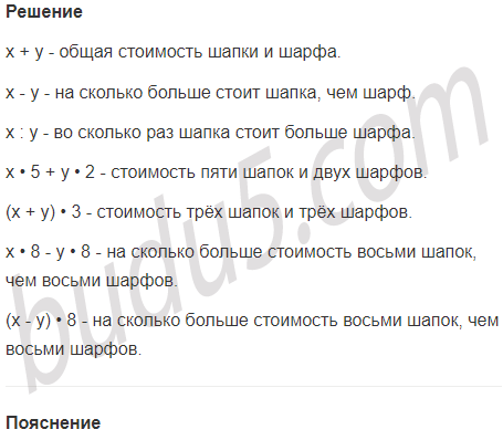 Задание № 12. Шапка стоит х руб., а шарф - у руб. Объясни смысл выражений:
