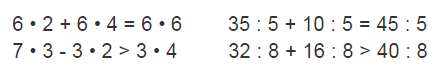 7 • 5 45 : 9 24 : 8   3 • 9 + (21 - 4)